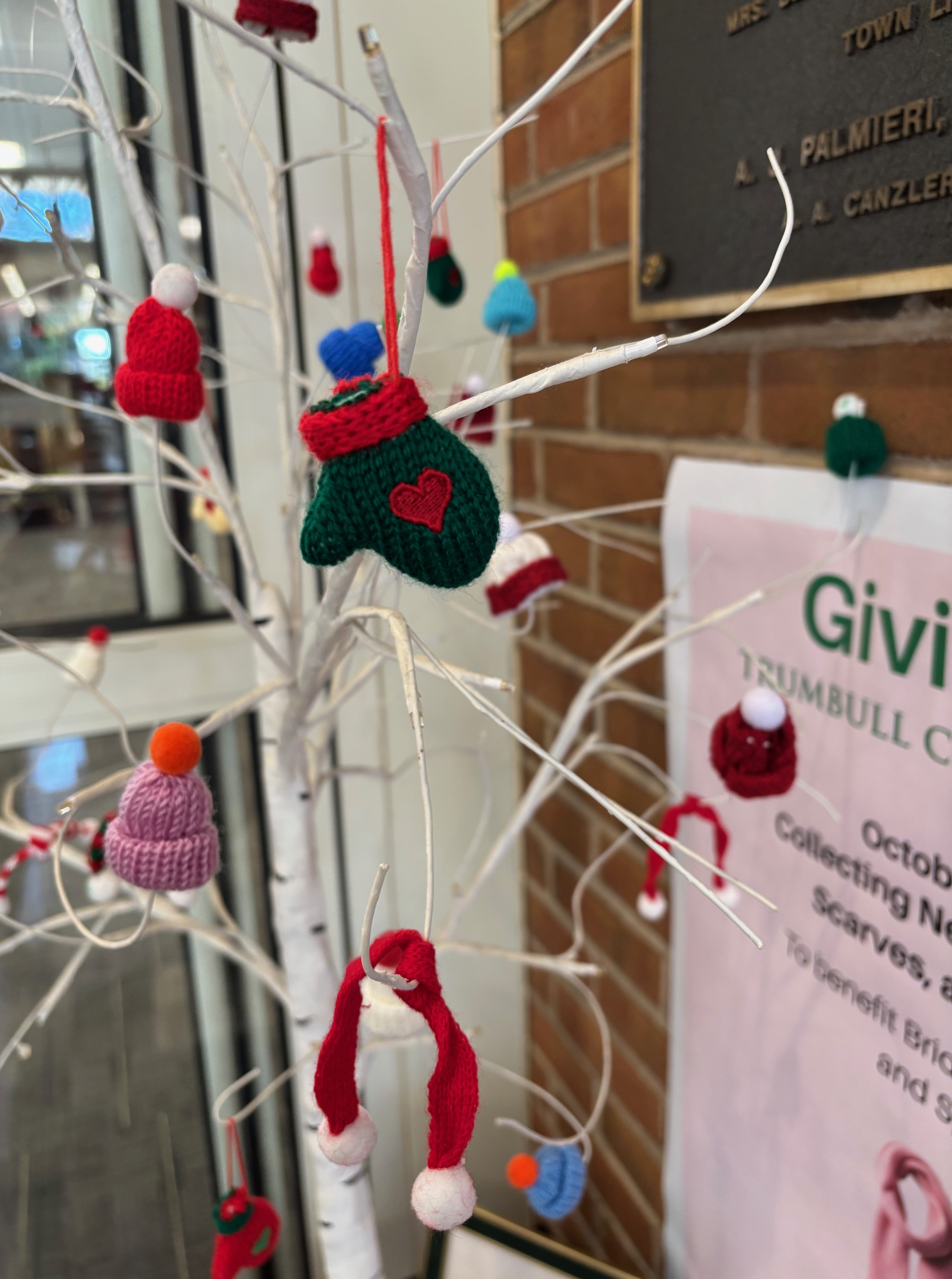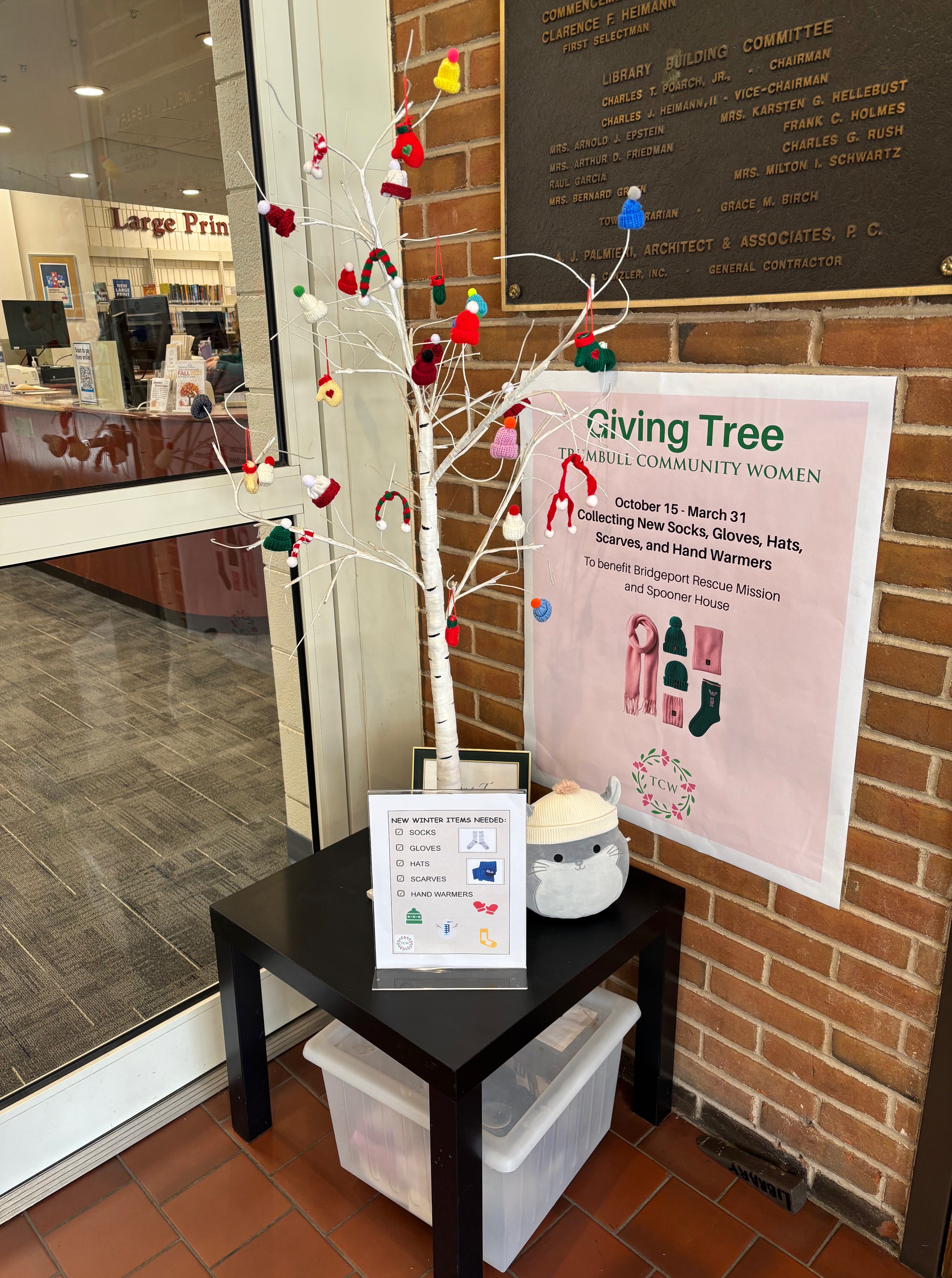 Donations can be dropped off at the Giving Tree located in the lobby of the Trumbull Public Library by the second set of doors.