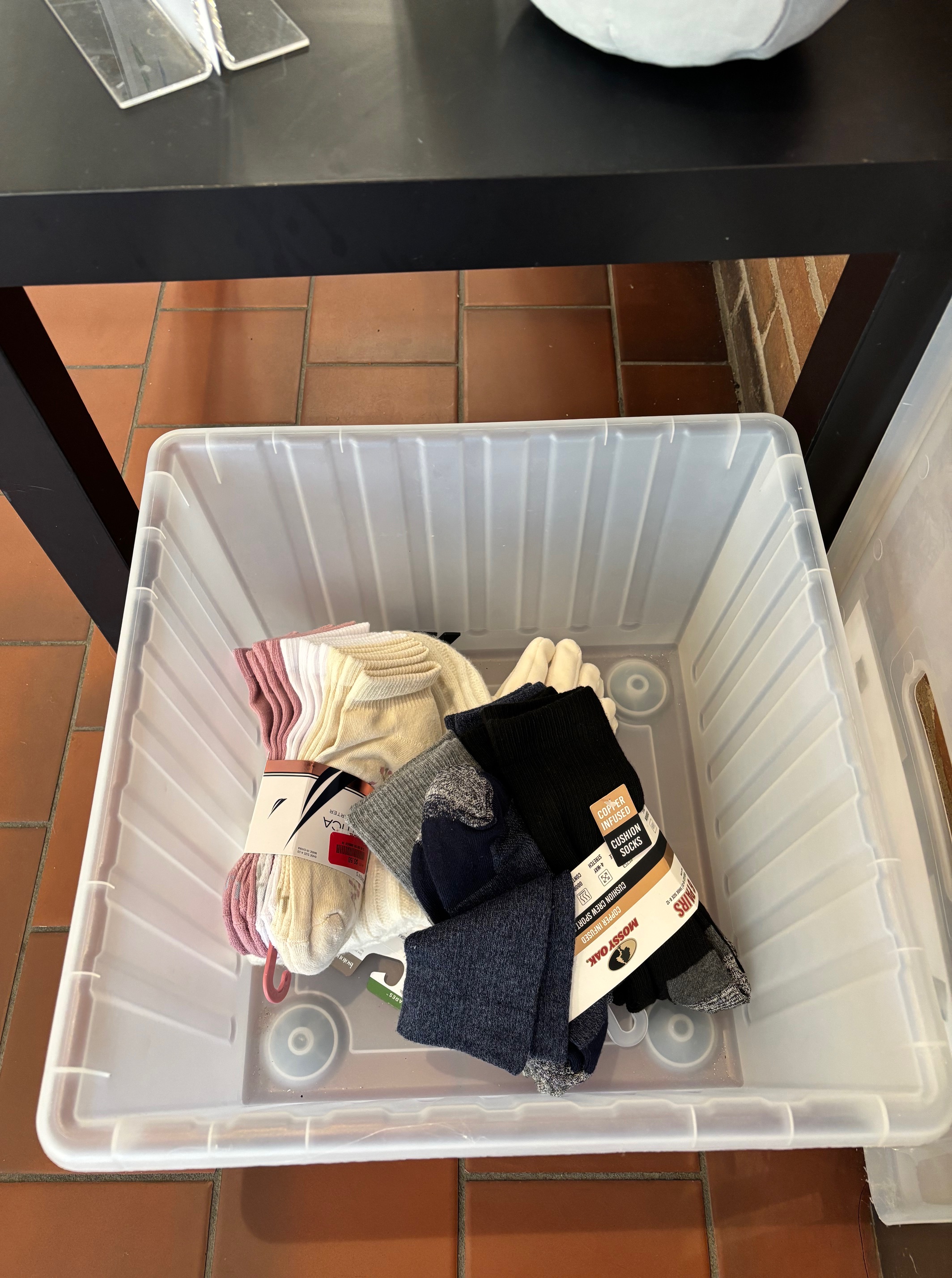 PLEASE CONSIDER DONATING: New socks, gloves, hats, scarves and hand warmers.