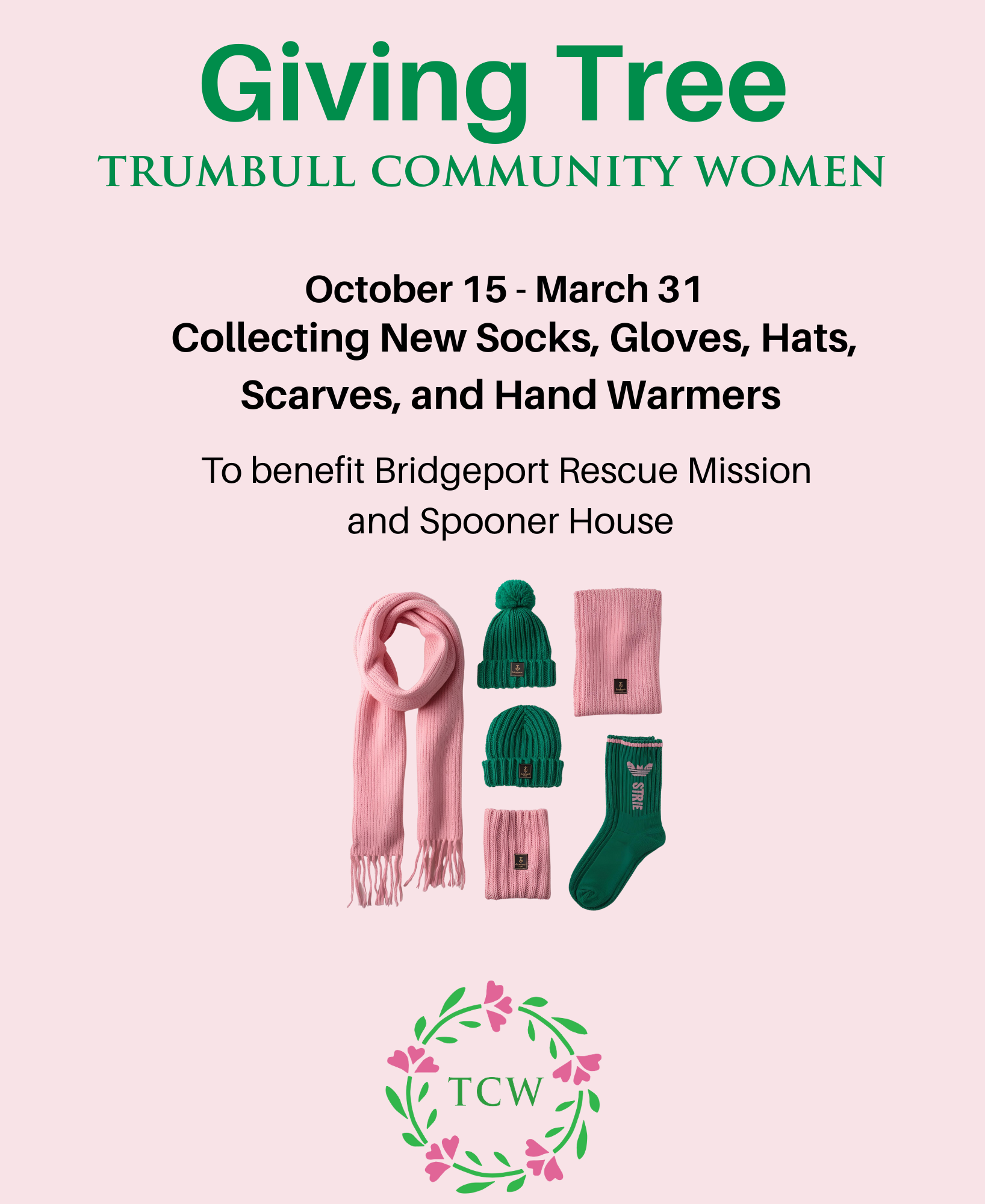 Trumbull Community Women are collecting new winter accessories that will benefit Bridgeport Rescue Mission and Spooner House (Shelton). Both organizations provide food, shelter, clothes, and support services to people in need.