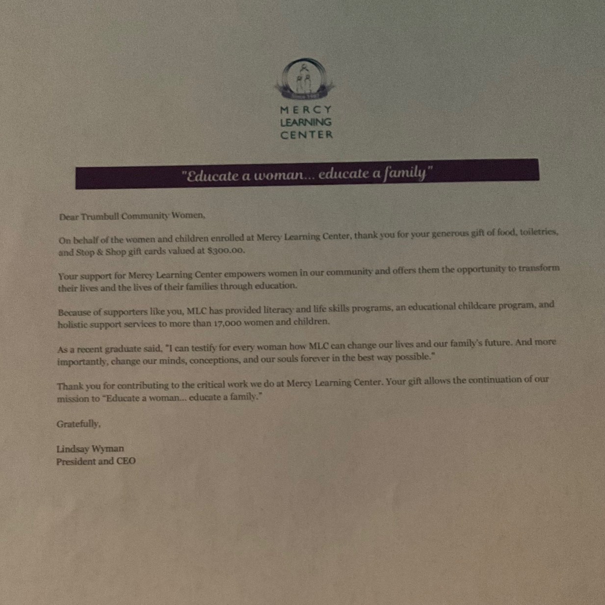 Mercy Learning Center Donations
