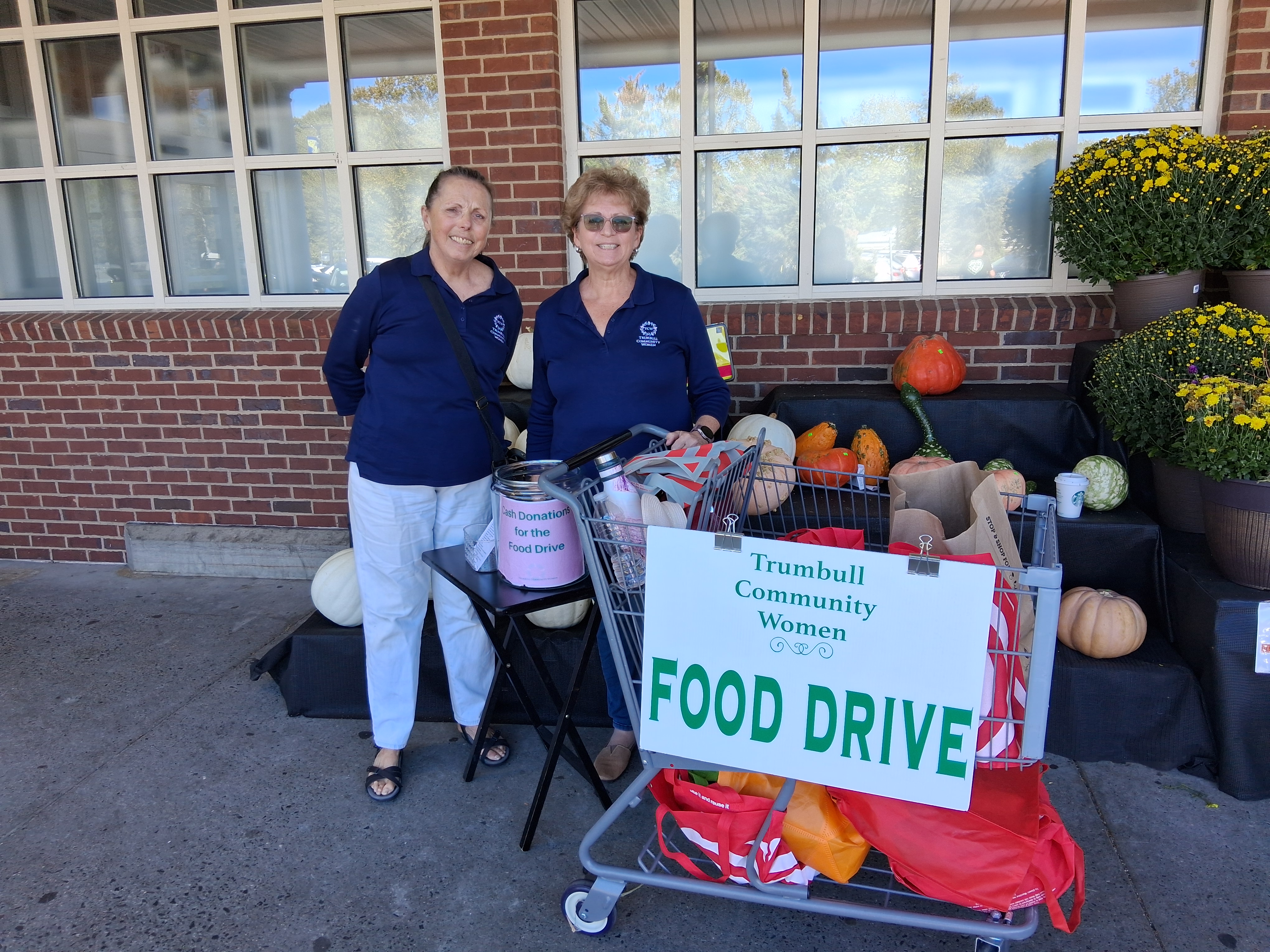 We had a beautiful day on September 20th for our food drive at the Trumbull Stop & Shop to benefit the Trumbull Food Pantry. We collected donations from 10 am to 2 pm at both entrances of the grocery store. The Trumbull community was once again very generous and contributed $4,500 in non-perishable food and toiletries as well as $450 in cash, which were converted to eighteen Stop & Shop $25 gift cards, for a total of $4,950 in donations. The donations, which filled two vehicles, were delivered to the Trumbull Food Pantry on Monday, September 22, by two members of our Families in Need team. It was another great Trumbull Community Women team effort!