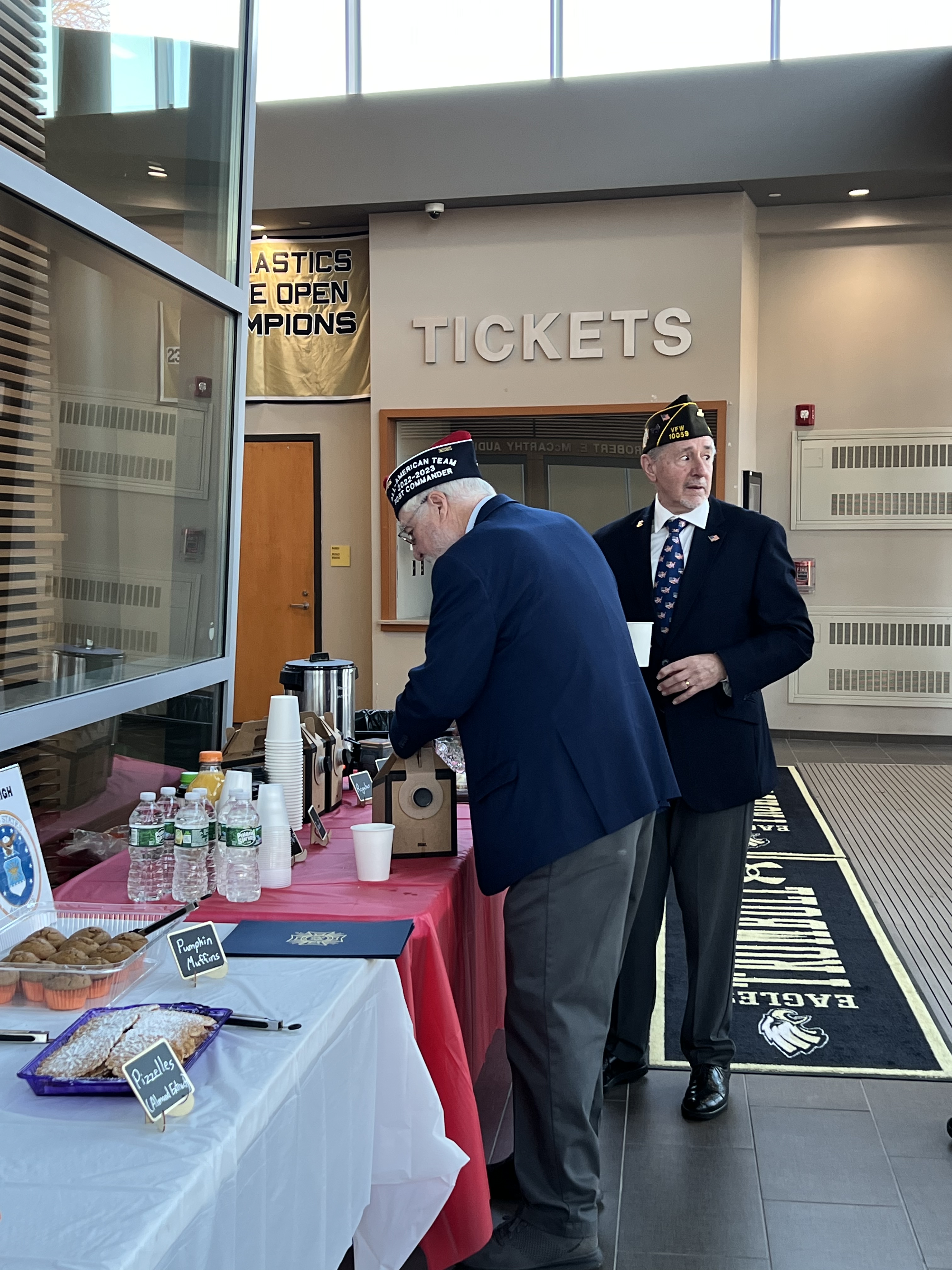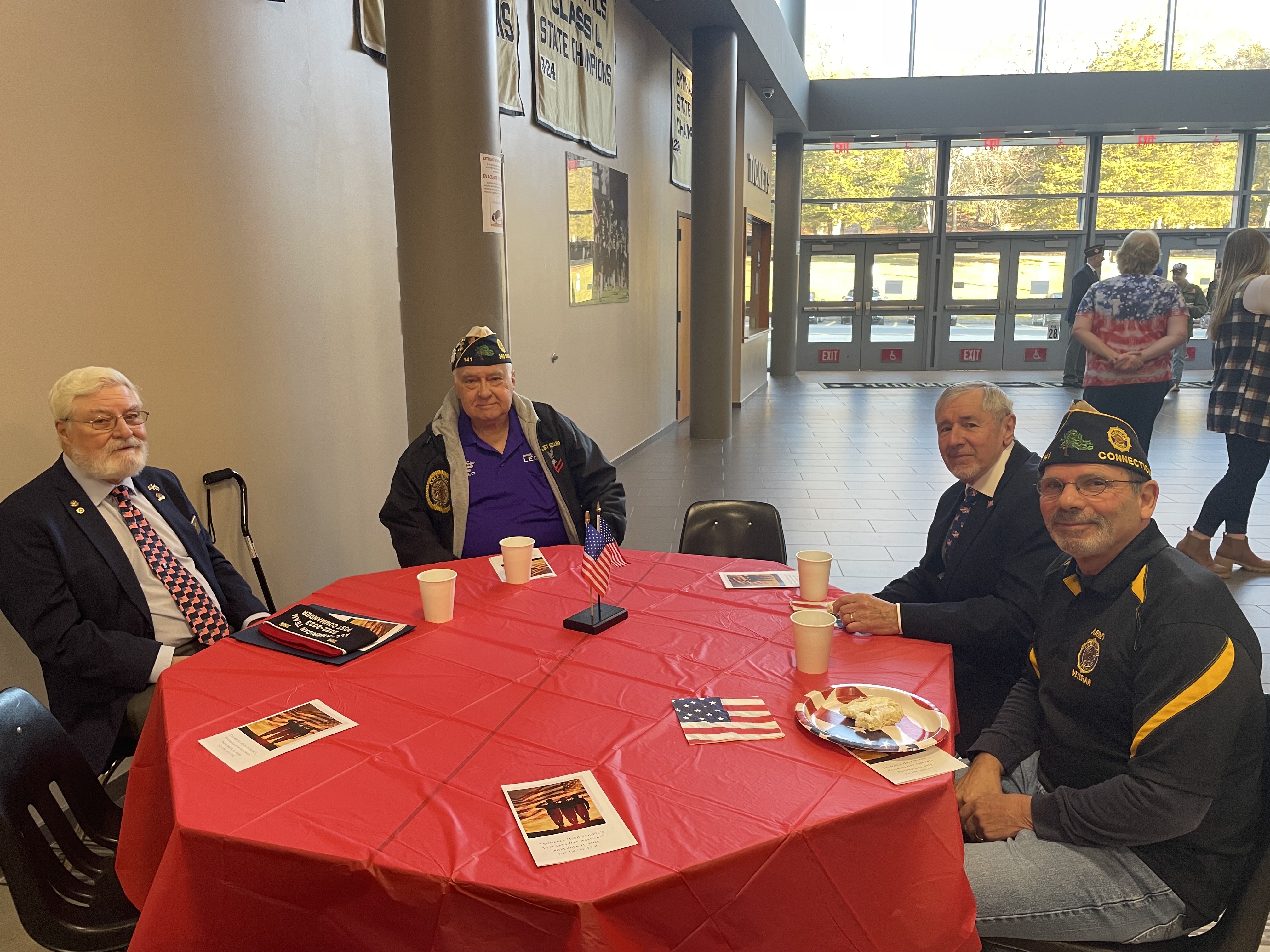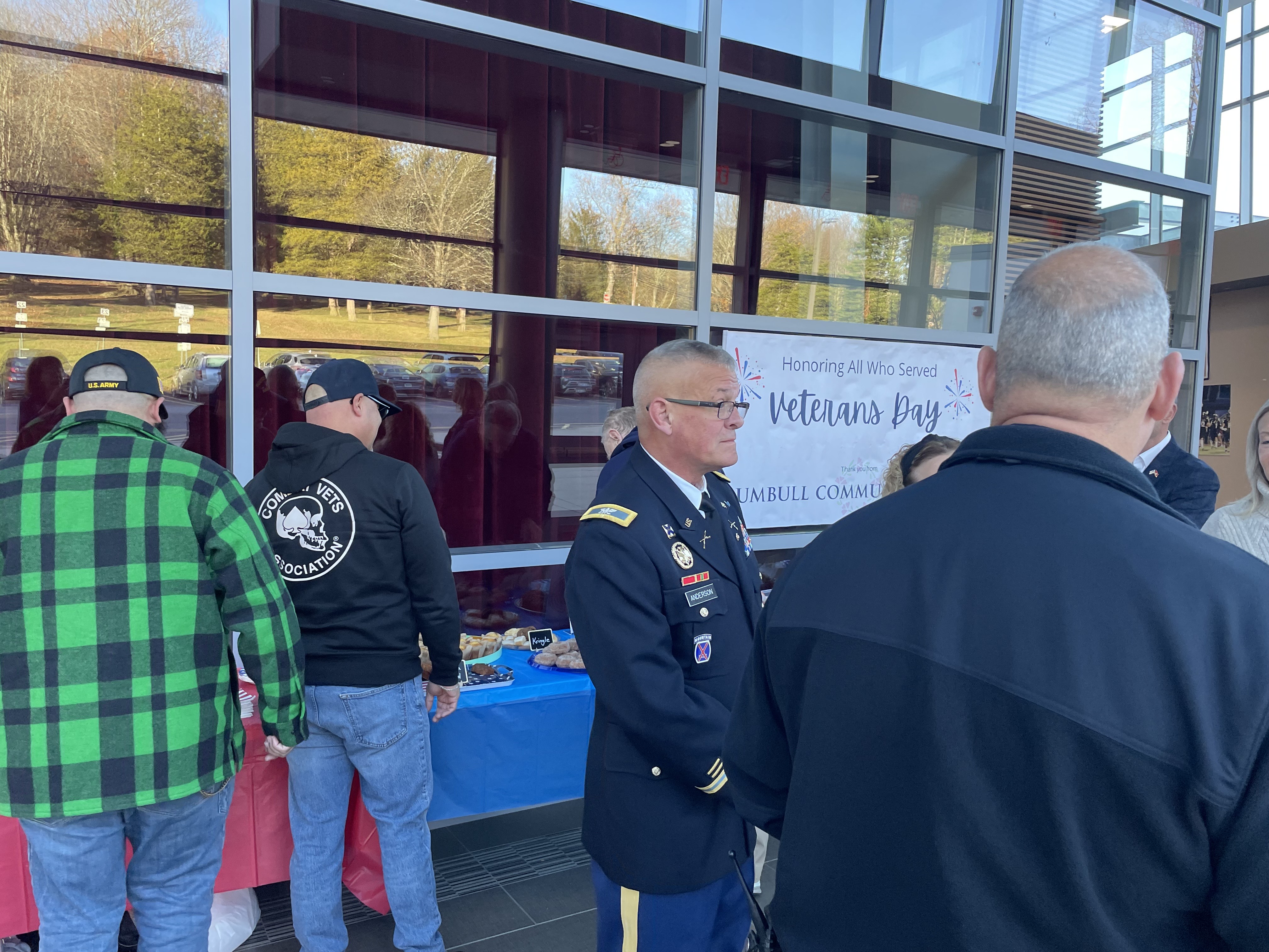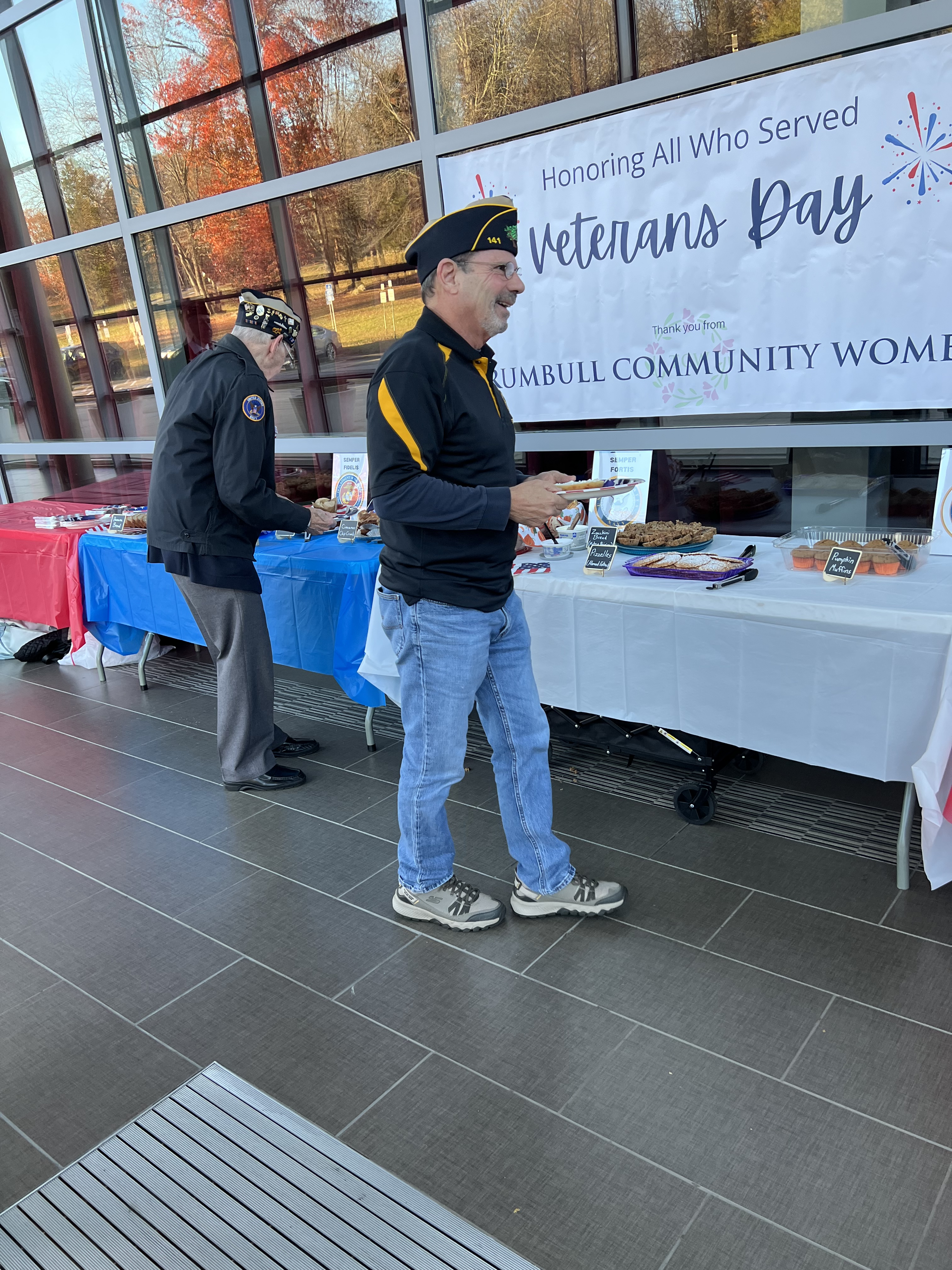 On November 11th, the Trumbull Community Women once again hosted a heartfelt breakfast buffet for local veterans before the Veterans Day assembly at Trumbull High School. A number of club members contributed by baking a variety of delicious pastries for the event, ensuring there was enough to also share with the Trumbull Police Department, Trumbull EMS and Library Staff. This annual tradition continues to be a rewarding experience, as it brings the community together to honor and show appreciation for those who have served.