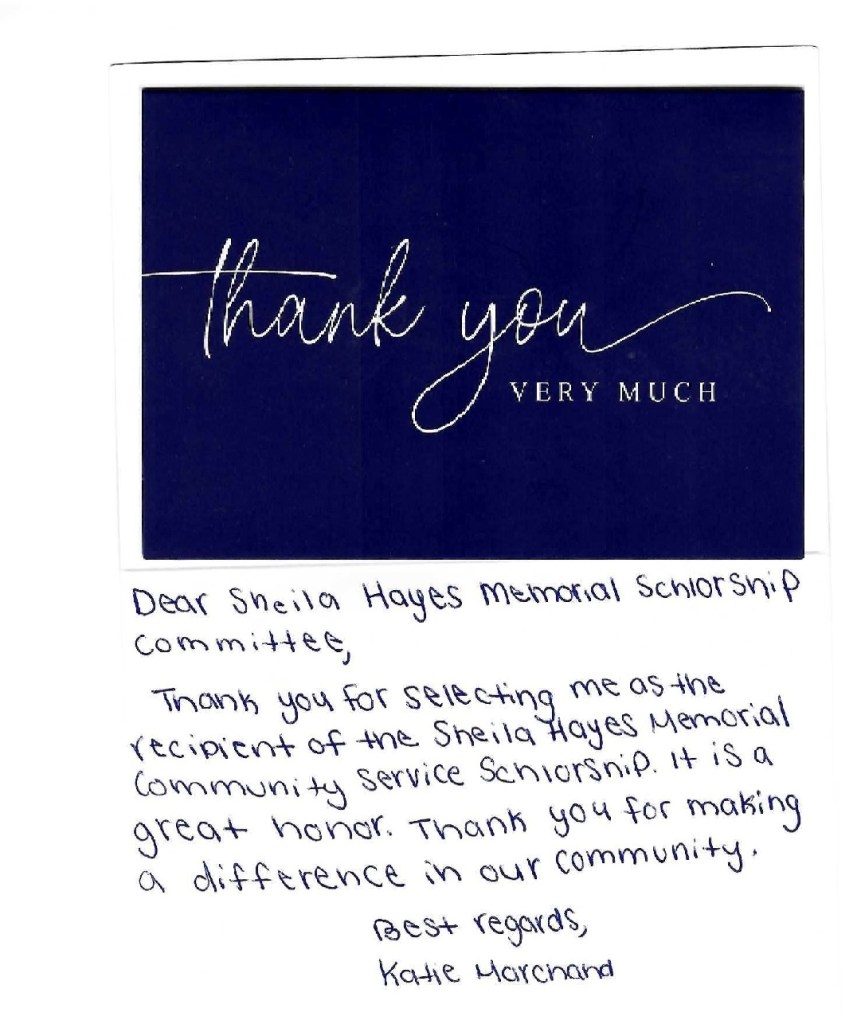 Thank you from the 2024 Sheila Hayes Memorial Scholarship Recipient (May 2024)