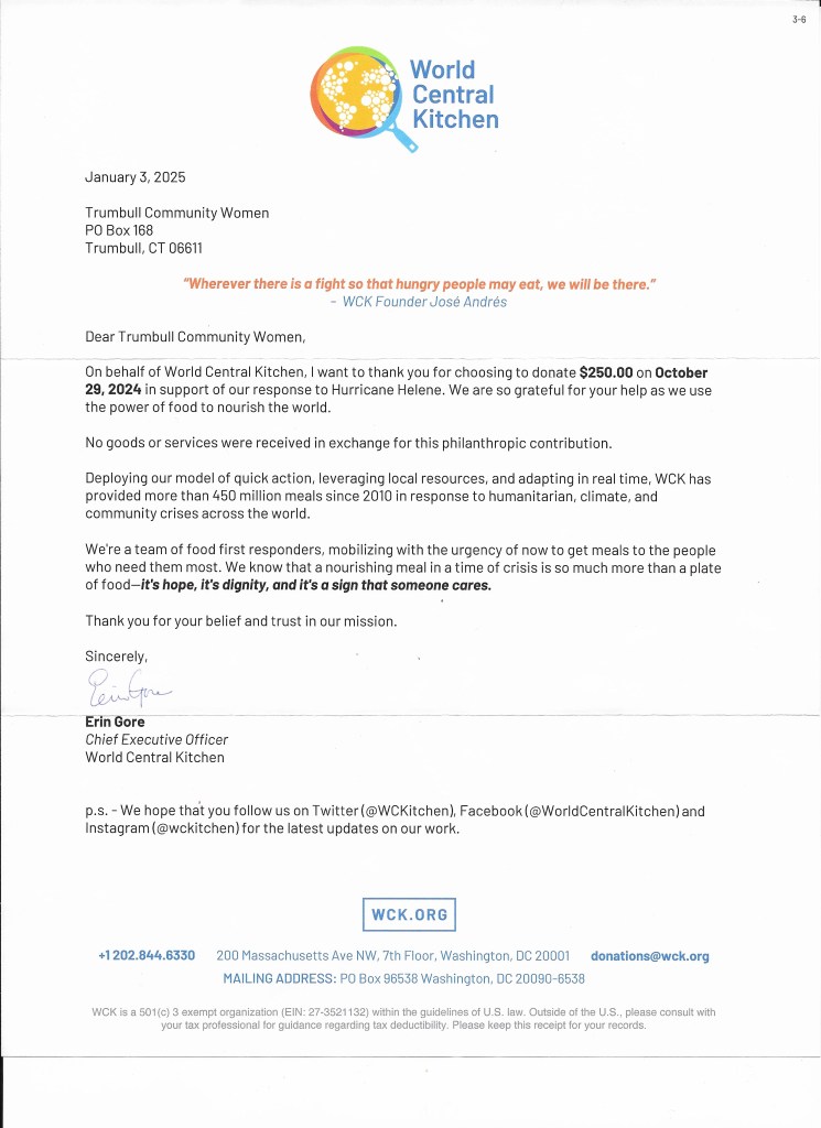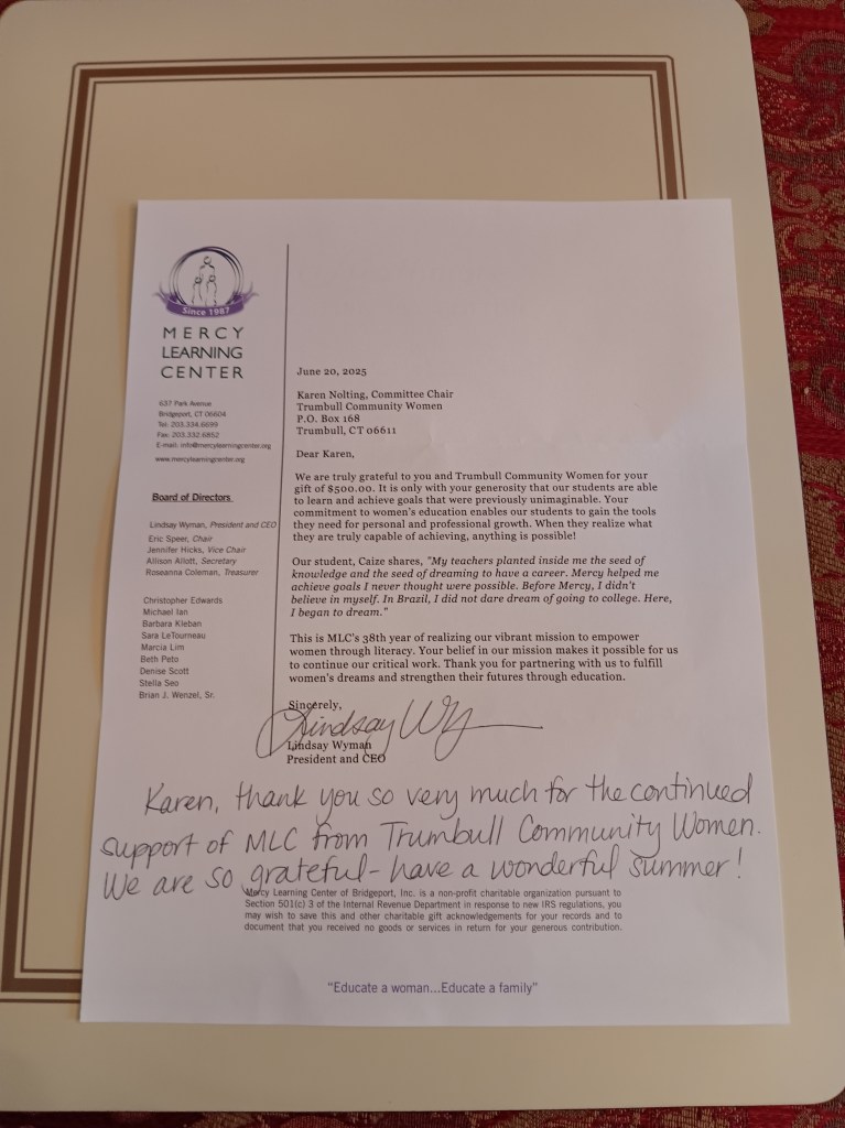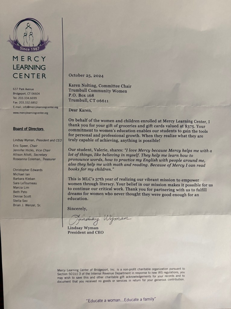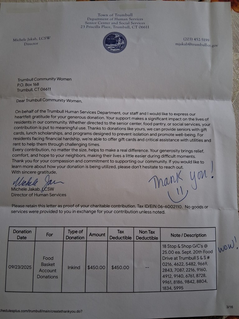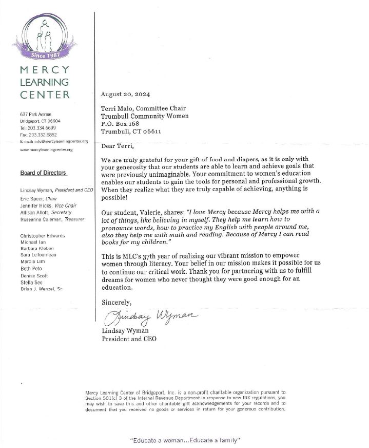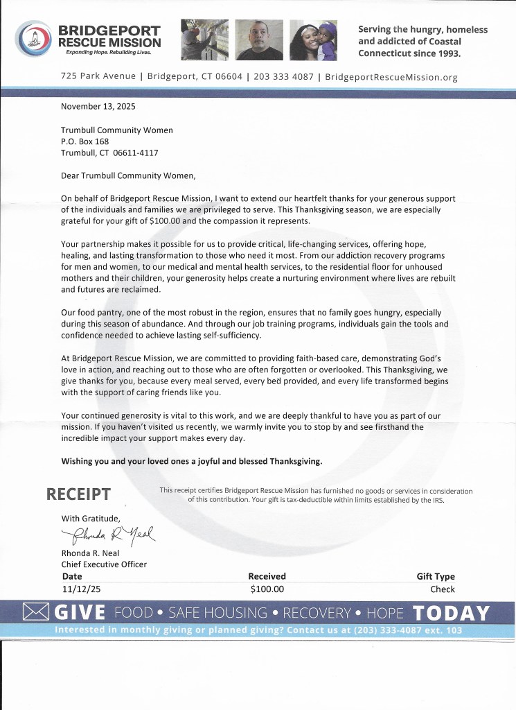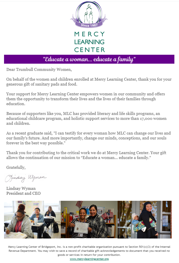 Below are letters of appreciation for contributions that Trumbull Community Women has made to the community.