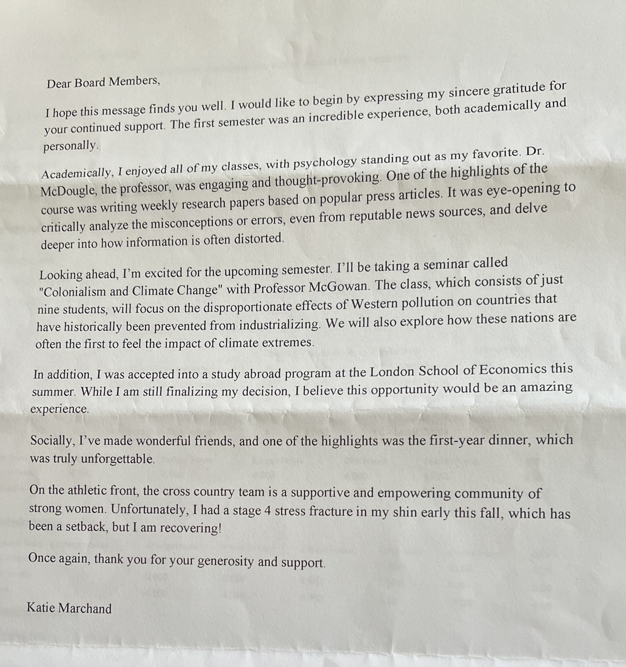 Thank you from MLC Scholarship Recipient