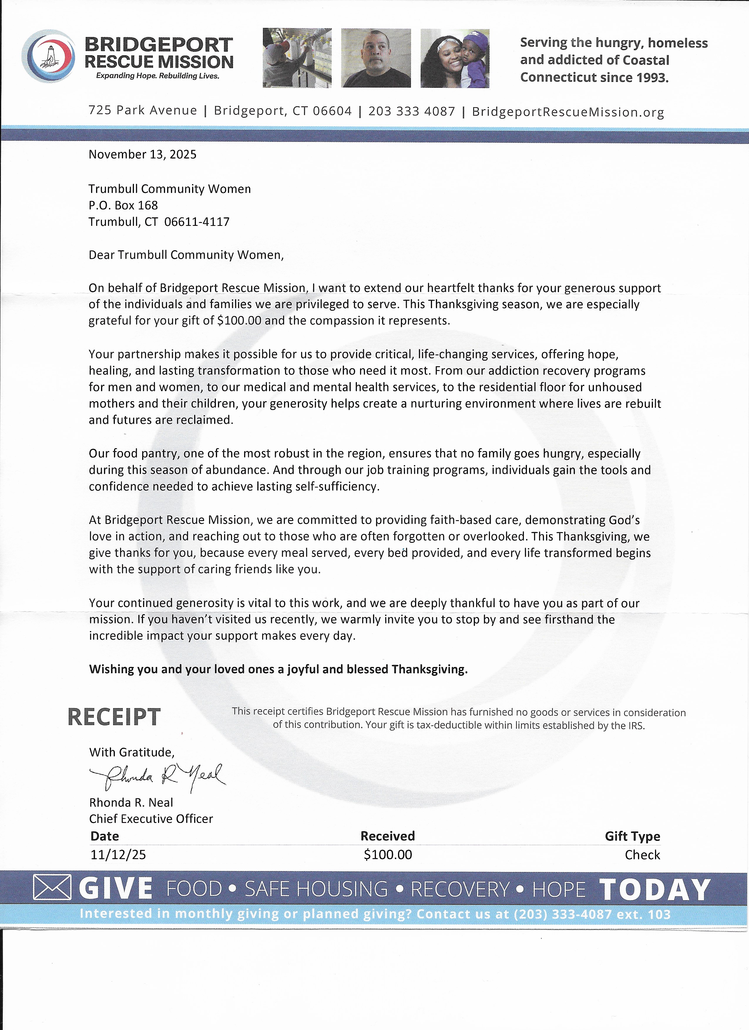 Thank you from Bridgeport Rescue Mission